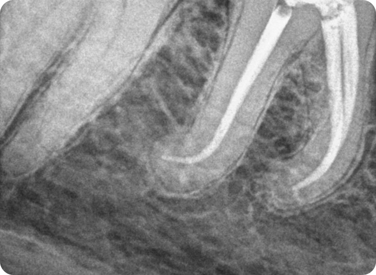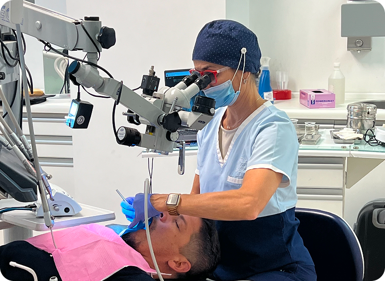 Removemos el tejido inflamado o infectado del interior del diente o muela, limpiando y desinfectando dentro las raíces.